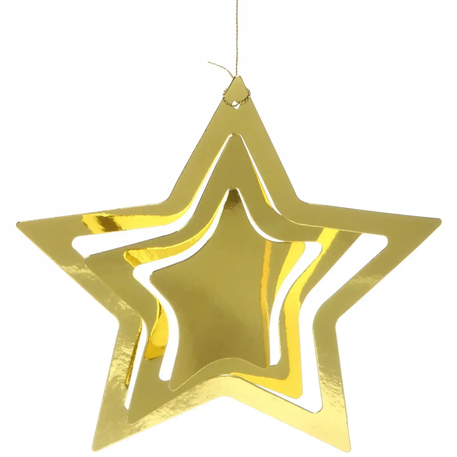 Подвесное украшение «Праздничная атмосфера» — это идеальный способ добавить волшебства и уюта в ваш дом. С его помощью вы сможете создать атмосферу праздника, которая будет радовать вас и ваших близких. Золотистые звезды, выполненные в многослойной конструкции, привлекут внимание и станут ярким акцентом в любом интерьере.