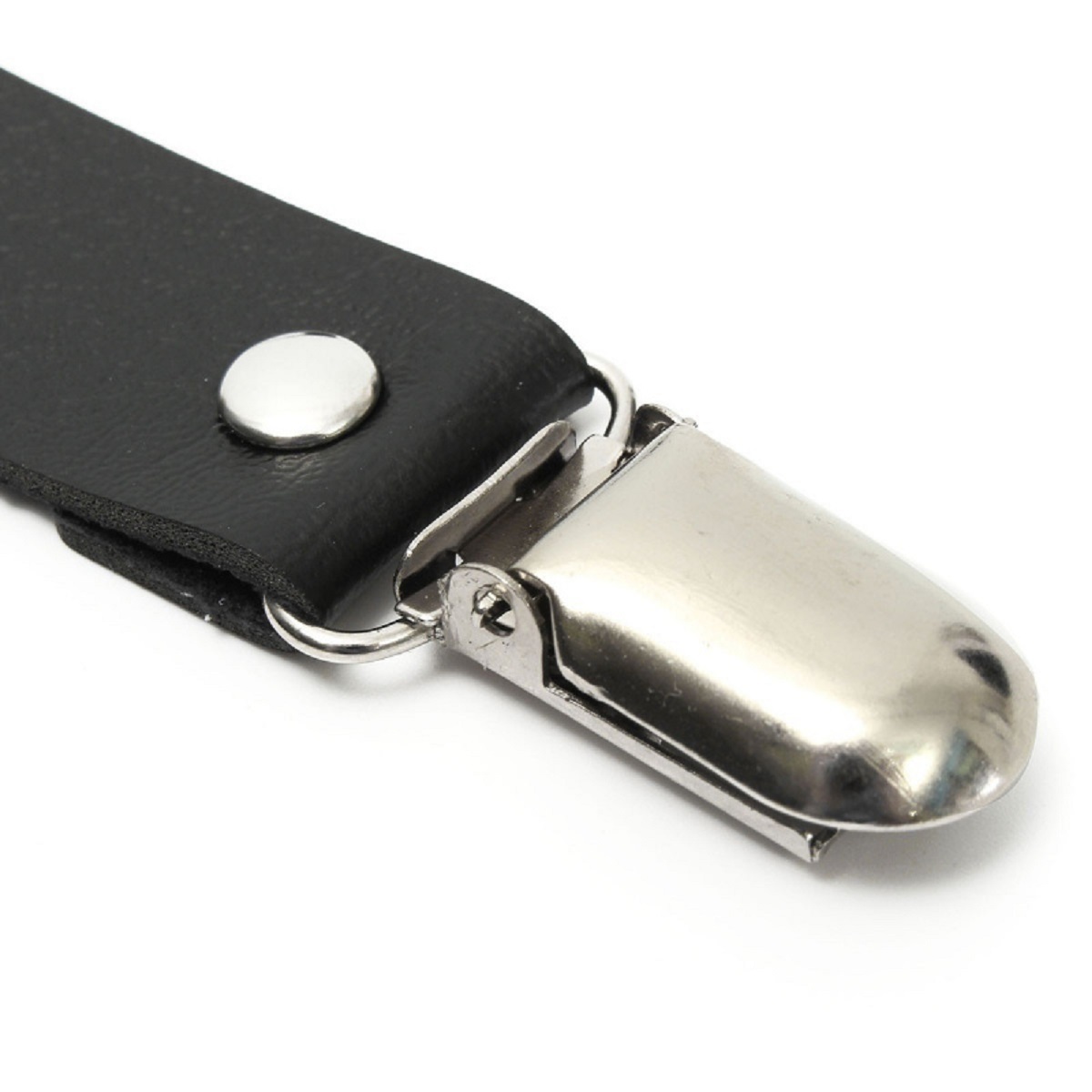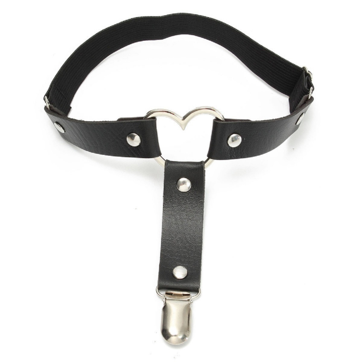 Изделие выполнено из мягкой искусственной кожи, а регулирующая резинка обеспечивает комфортную посадку. Размер универсальный, ширина - 2 см, цвет – черный. Можно носить как декоративный аксессуар или функциональный элемент белья, выделяясь из толпы и создавая запоминающийся образ.