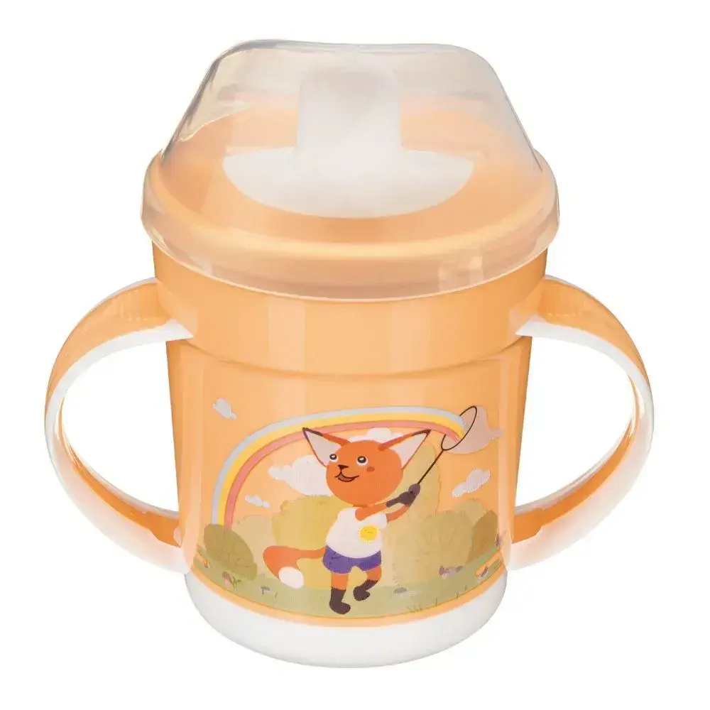 Поильник детский с ручками и защитной крышкой, 320 мл, пластик, оранжевый, рисунок котика