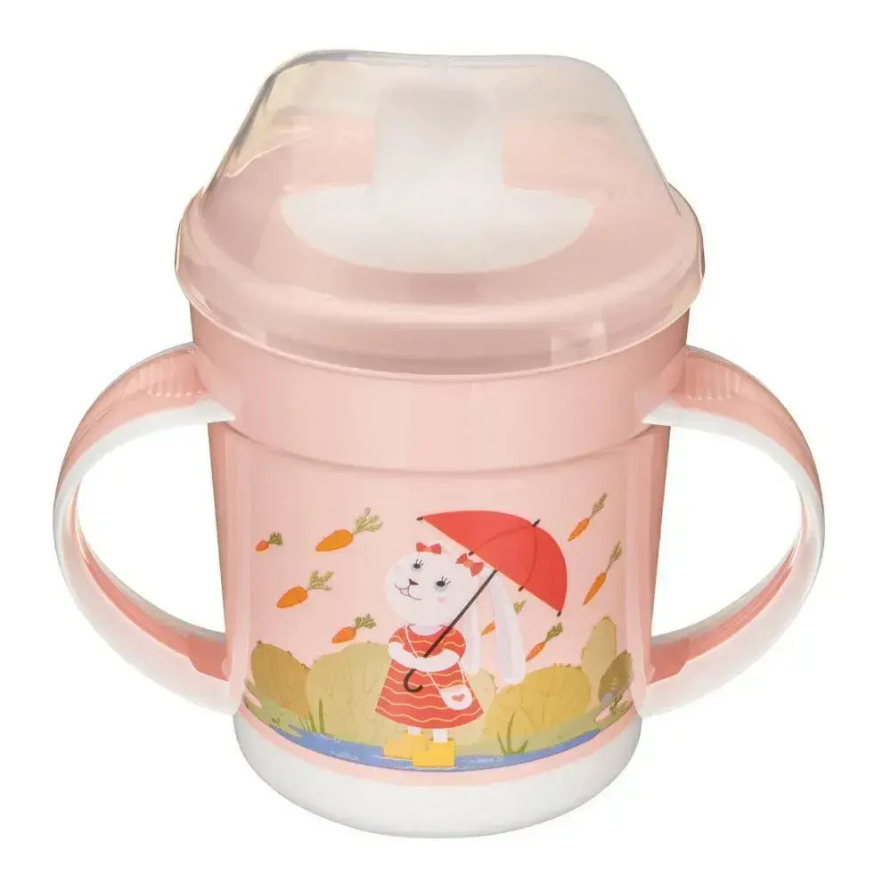 Поильник детский с защитной крышкой 320мл, удобные ручки, дизайн с рисунком, светло-розовый