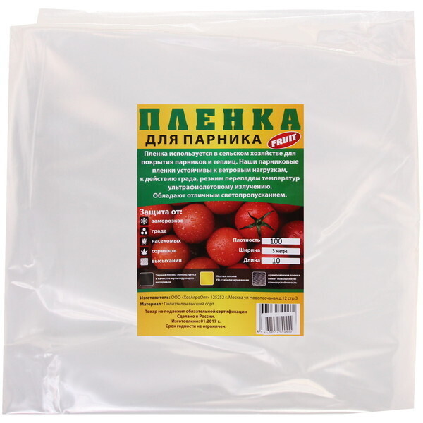 Пленка имеет толщину 100 мкм, ширину 3 метра и длину 10 метров. Она изготовлена из высококачественного полиэтилена, что гарантирует ее надежность и долговечность. Срок годности пленки составляет 1 год с даты изготовления, что позволяет вам быть уверенными в ее качестве на протяжении всего сезона.