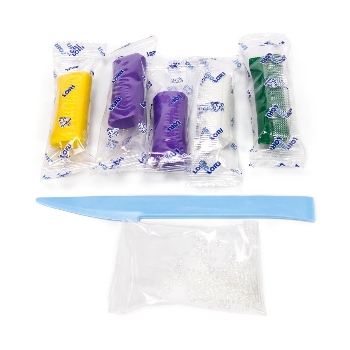 - 4 цвета полимерной глины (желтый, зеленый, белый, фиолетовый)