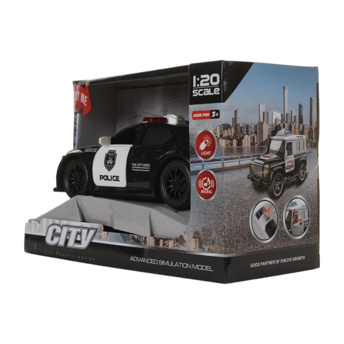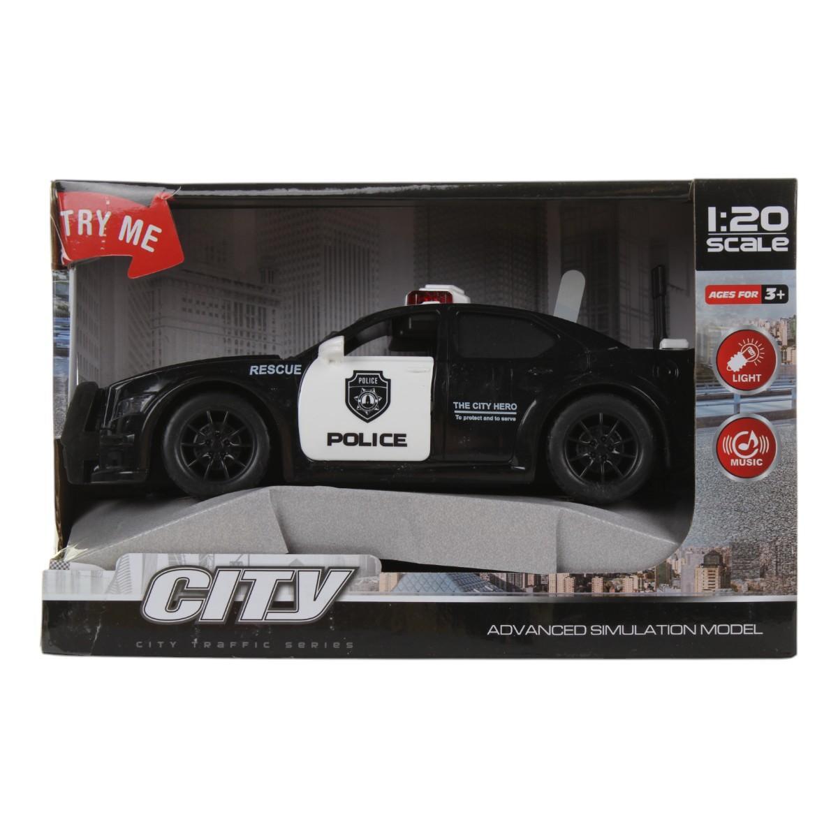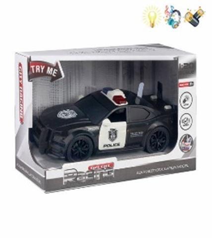Полицейская машина инерционная со светом/звуком, черно-белая, 22х9.5х14см