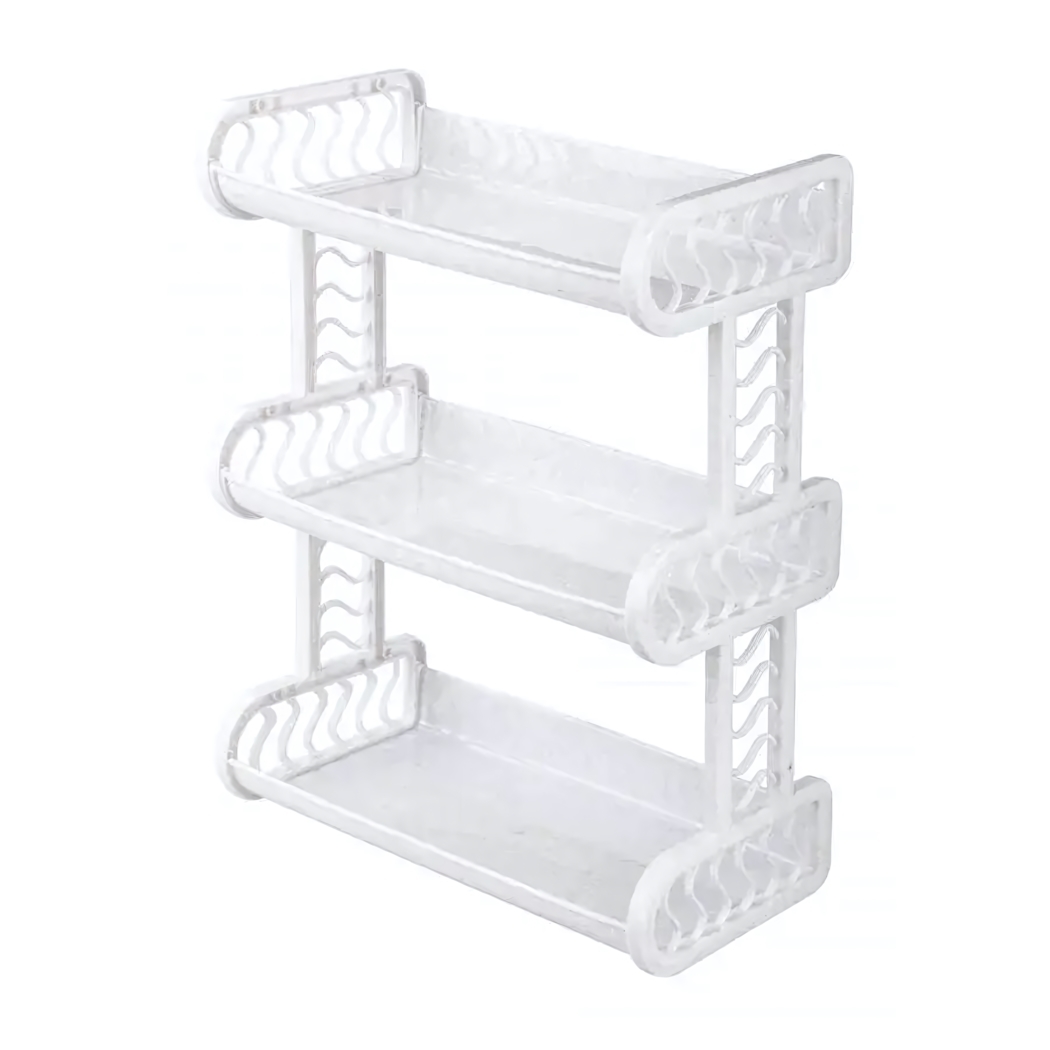 Идеальное решение для хранения косметики, банных принадлежностей и аксессуаров. Три просторных яруса с защитными бортиками предотвратят падение предметов, а волнообразный рельеф стенок добавит эстетики вашему интерьеру.