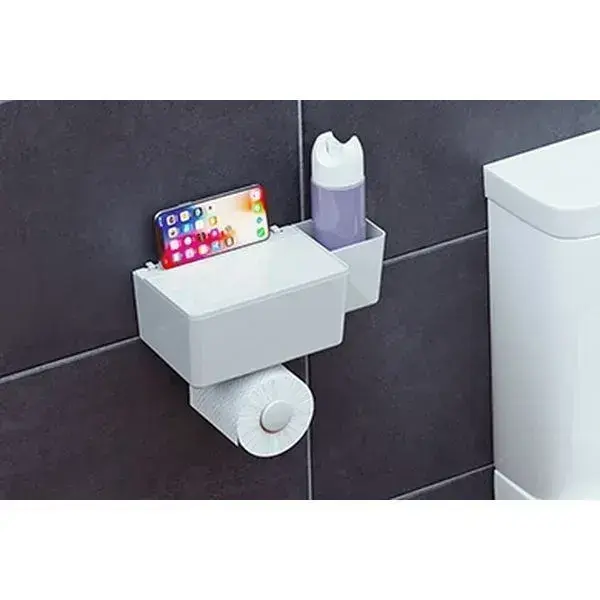 Полка для туалета Glomma, снежно-белый, настенный держатель с контейнером