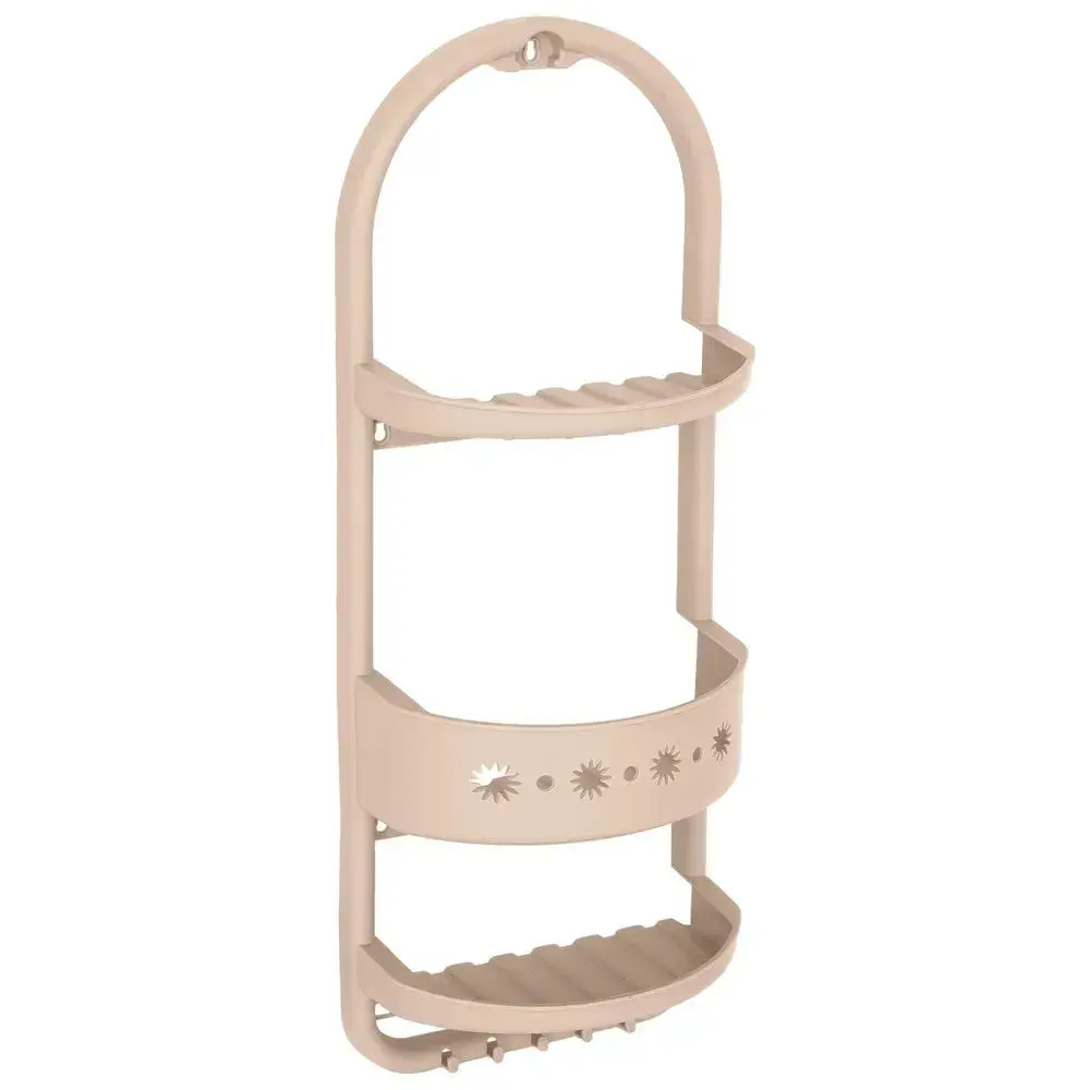 Полка для ванной 3-уровневая, пластик, кремовый цвет, 665х135 мм, с бортиками и вентиляцией