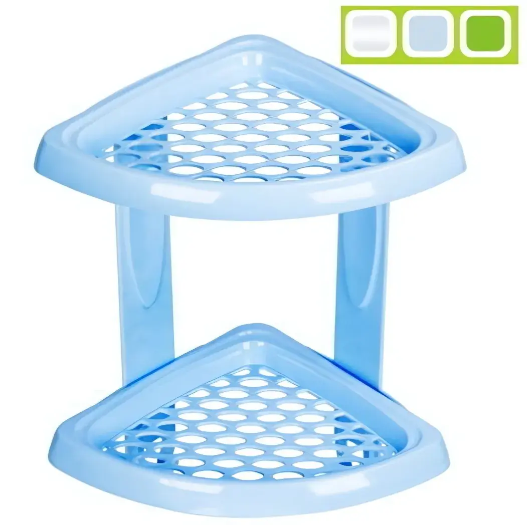 Угловая полка для ванной «Морелла», 2 яруса, пластик, цвет: белый/голубой/зеленый