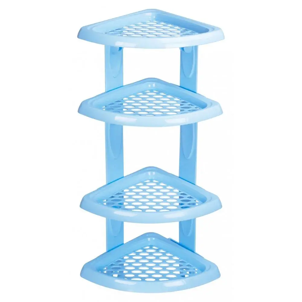 Полка для ванной 4-ярусная треугольная, пластик, устойчивая, светло-голубой, комплект 8 предметов