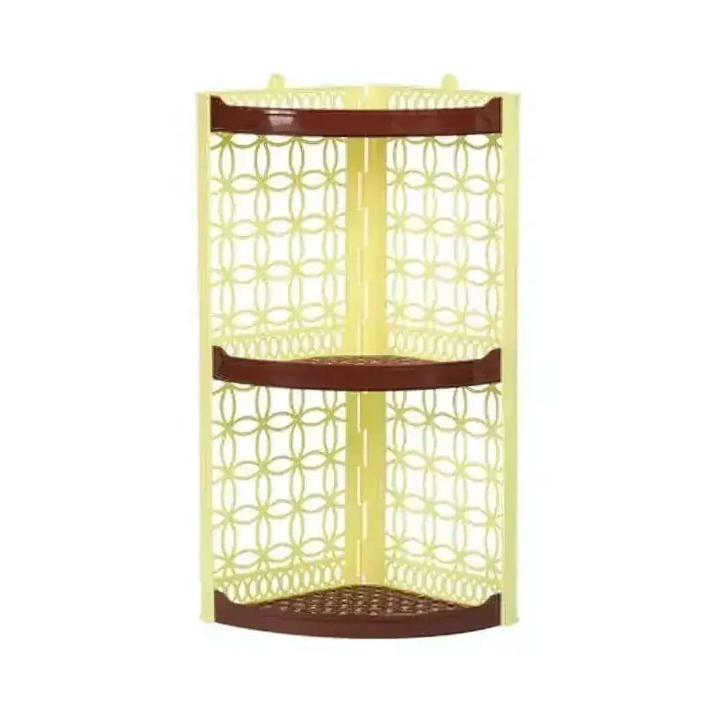 Угловая полка для ванной, 3 уровня, пластик, цвет бежево-коричневый, компактное хранение
