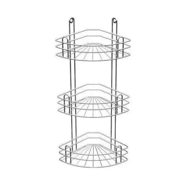 Угловая полка с тремя вместительными секциями помогает организовать хранение аксессуаров и косметики в ванной комнате, экономя место и создавая ощущение комфорта. Глубокая конструкция защищает предметы от падения, а прочный металлический каркас надежно удерживает даже тяжелые флаконы.