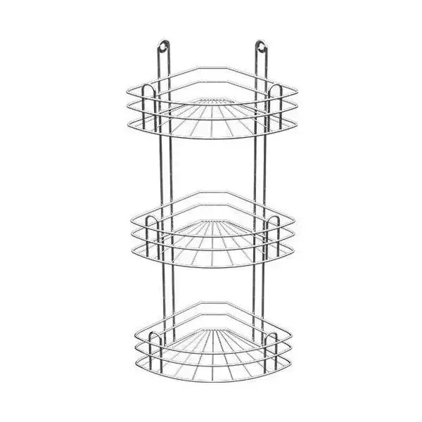 Воплощайте порядок и комфорт в ванной комнате с помощью радиальной угловой полки на три яруса. Увеличенная глубина секций и продуманная форма позволяют удобно хранить бутылки, банки и любые другие аксессуары, не занимая лишнего пространства. Благодаря серебристому металлическому исполнению изделие выглядит современно и сохраняет аккуратный внешний вид даже при регулярном использовании.
