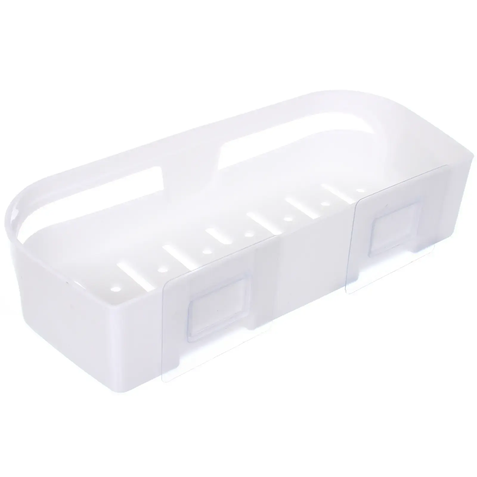 Полка выполнена из прочного белого пластика, что обеспечивает ее легкость и устойчивость к влаге. В конструкции предусмотрены вентиляционные отверстия для стока воды, что предотвращает накопление влаги и образование плесени. Для установки достаточно обезжирить поверхность, приклеить крепление и подождать 24 часа перед использованием. Не рекомендуется устанавливать на шероховатые поверхности.