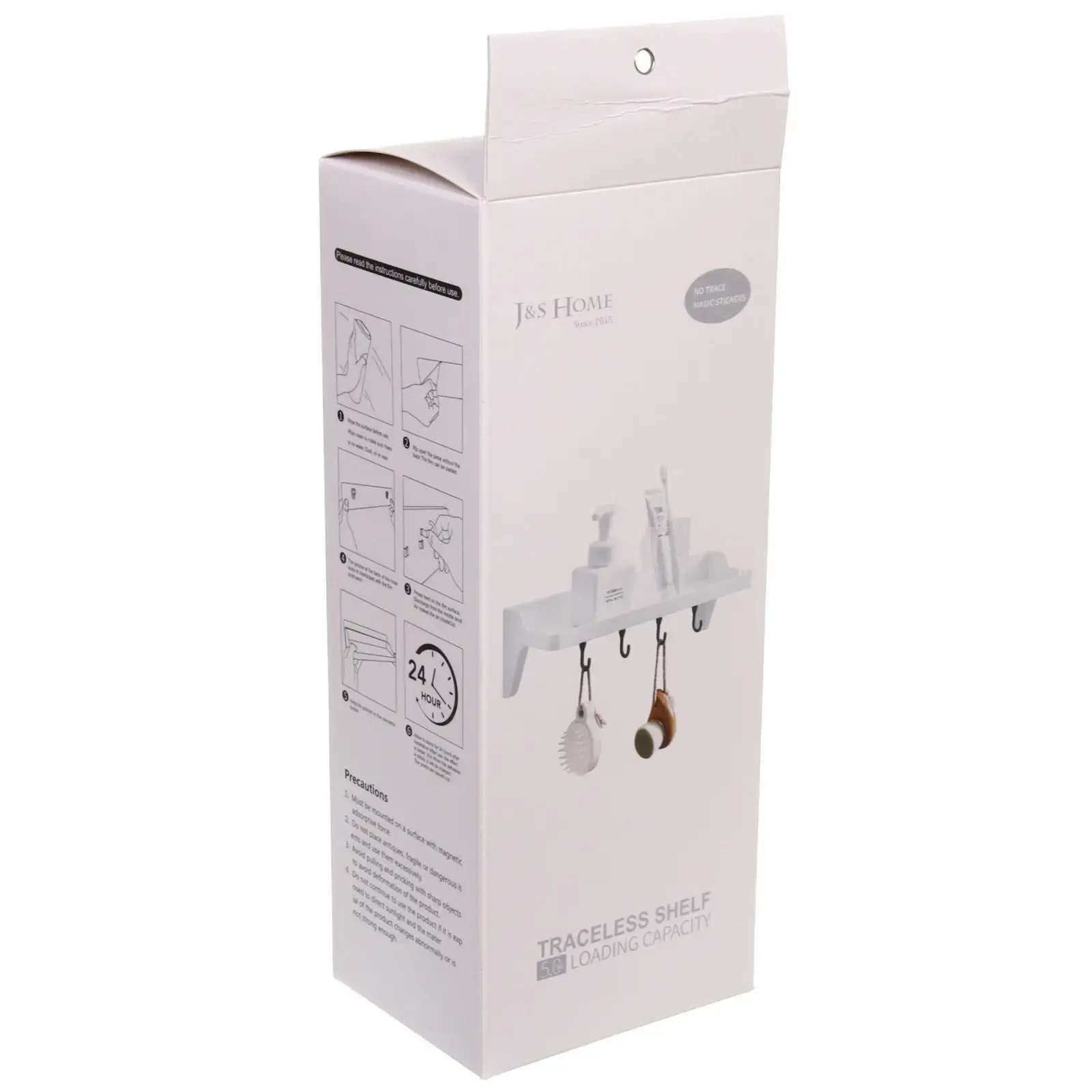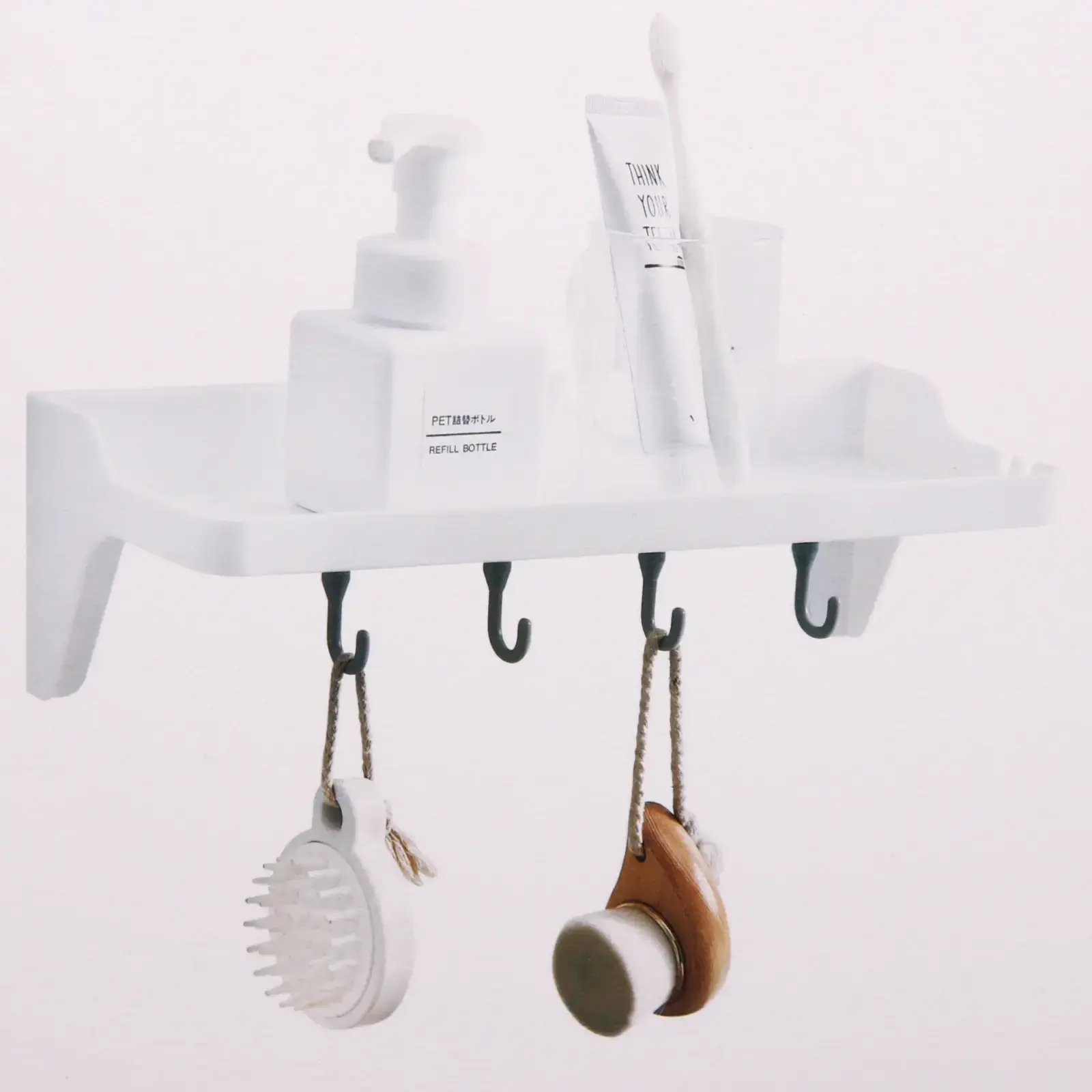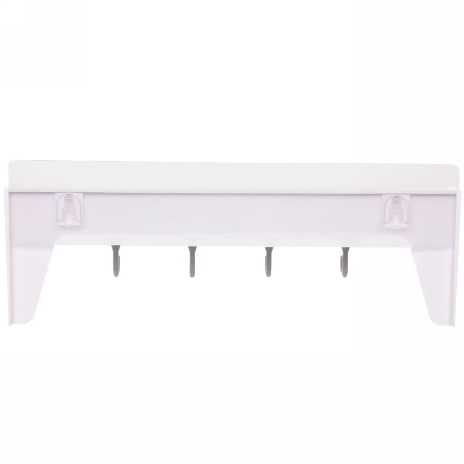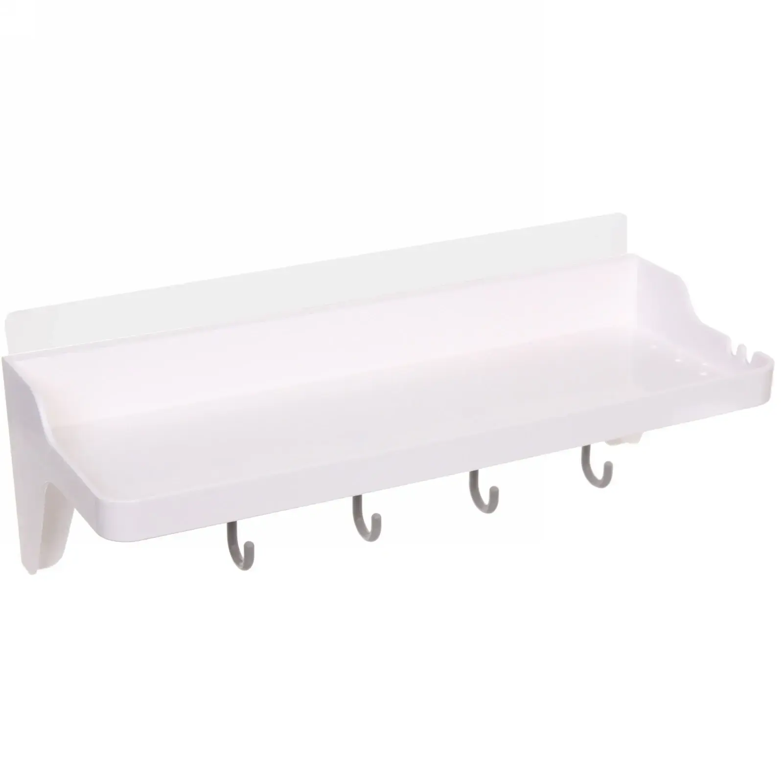 Полка для ванной самоклеющаяся, с крючками, белая, пластик, 35х13.5х11см