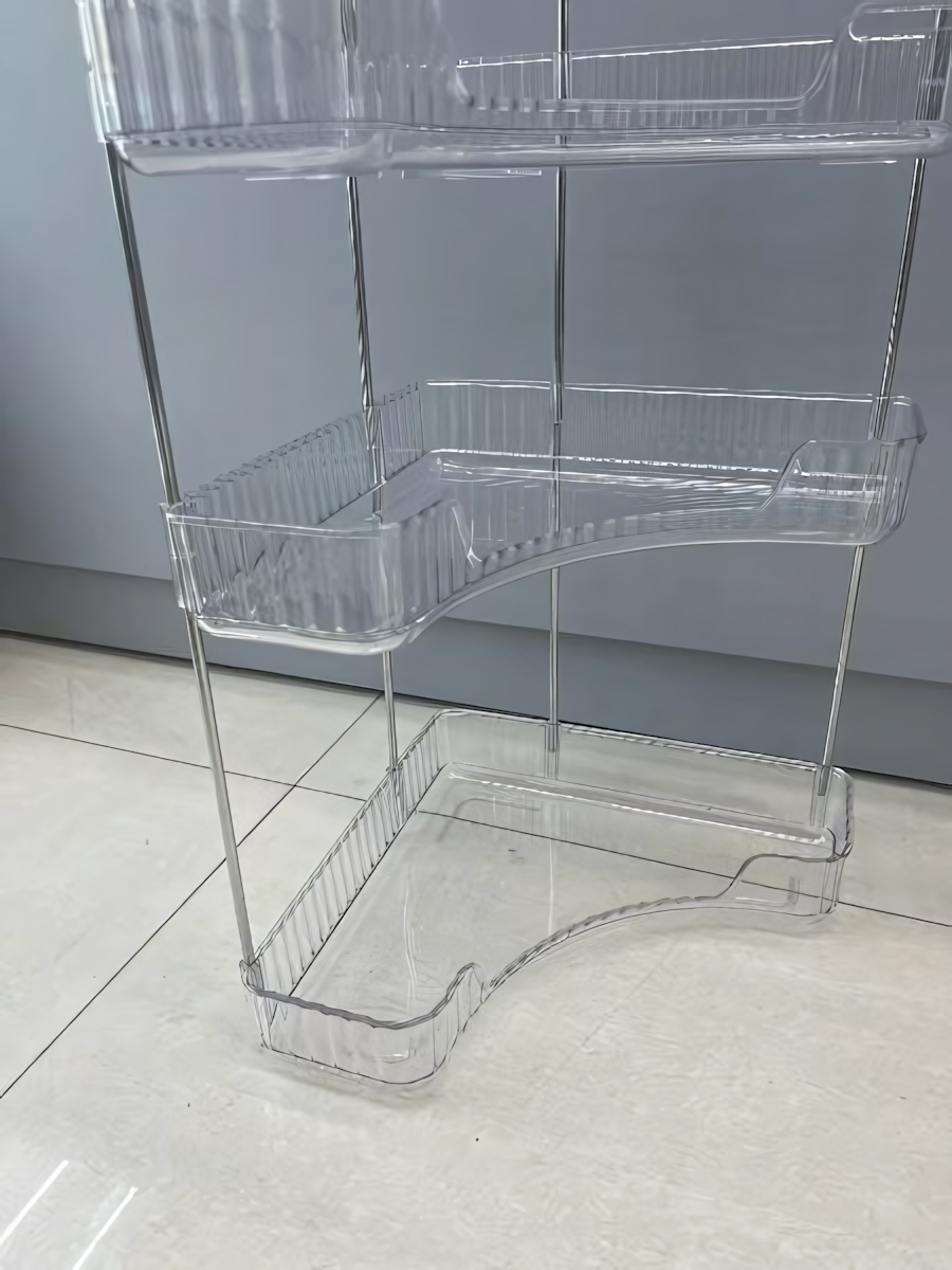 - Прозрачный пластик делает полку легкой и стильной, позволяя видеть содержимое.