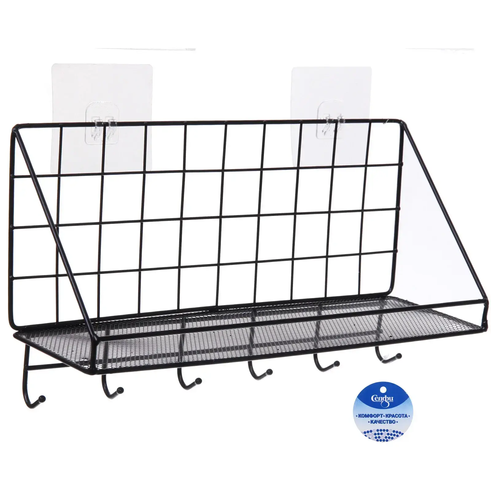 Полка выполнена из прочного металла, что гарантирует её долговечность и надежность. Чёрный цвет и сетчатая конструкция придают ей современный вид, а также обеспечивают хорошую вентиляцию для размещаемых предметов. Благодаря своим компактным размерам (35х12х20 см) она не займет много места, но при этом станет отличным дополнением вашего интерьера.