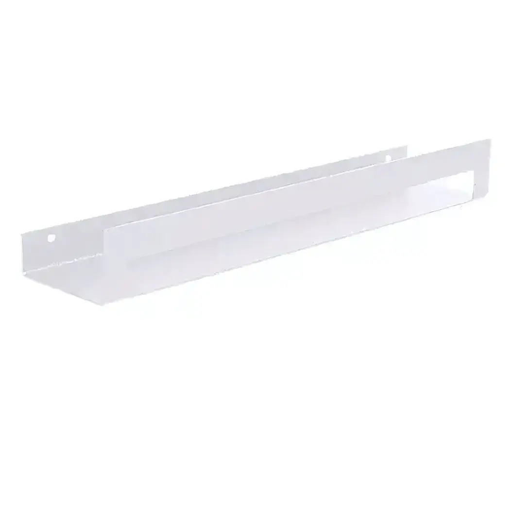 Полка оснащена предустановленными монтажными отверстиями по краям, что обеспечивает быстрый и надежный крепеж на стену. Универсальный размер 50 см позволяет разместить предметы разного формата — от флаконов до полотенец.