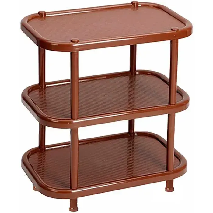 Изготовлена из прочного пластика, устойчивого к механическим нагрузкам. Размеры каждого уровня позволяют разместить предметы различной формы и размера.