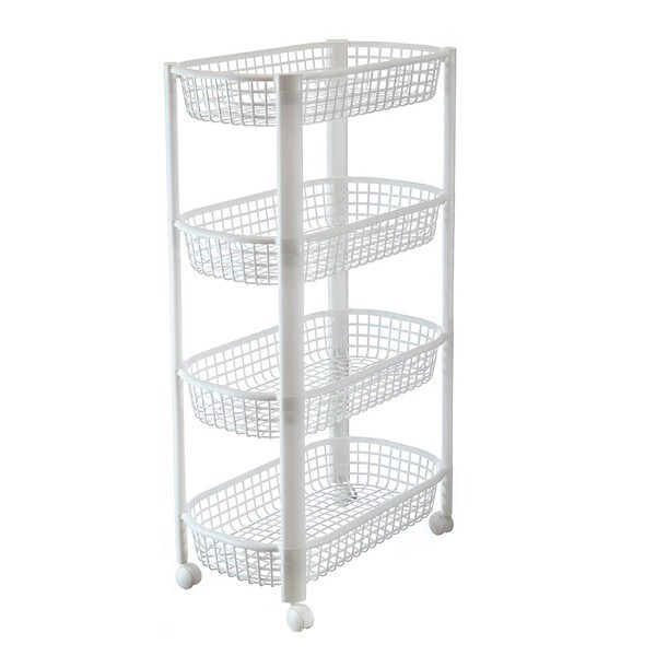 Полка овощная на колесах, 4 секции, цвет фисташковый, пластиковая
