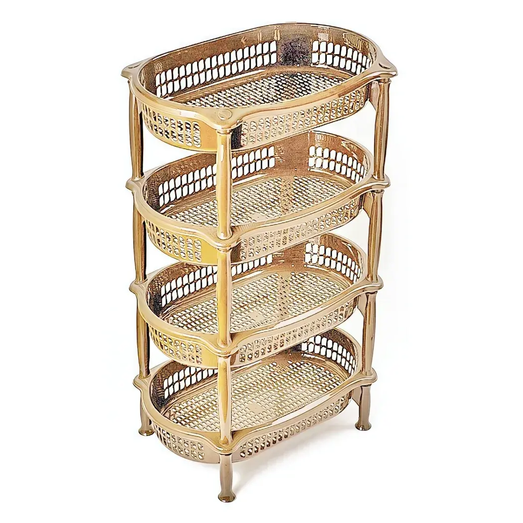 Овальная 4-ярусная конструкция создана для рационального хранения овощей, кухонной утвари и бытовых мелочей. Решетчатая структура обеспечивает циркуляцию воздуха, сохраняя продукты свежими дольше.