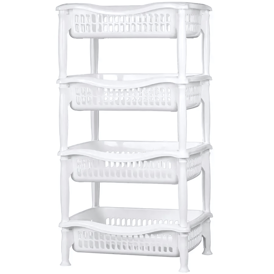 Эта полка овощная создана для тех, кто ценит чистоту, порядок и быстрое решение ежедневных задач. Четыре вместительных яруса позволят разместить свежие овощи, фрукты или любые другие продукты так, чтобы они всегда были в зоне доступа и надежно защищены от случайного повреждения. Открытая конструкция обеспечивает отличную вентиляцию и лёгкий контроль над запасами.