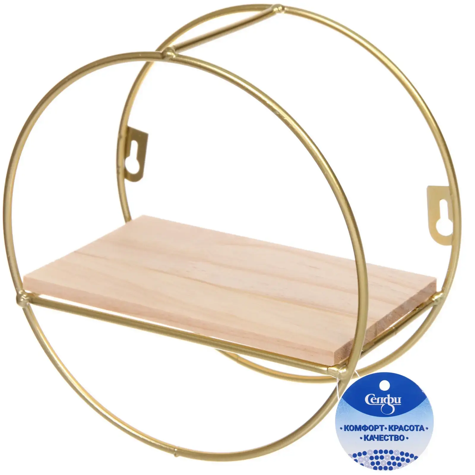 Полка подвесная «ЛОФТ ИДЕЯ» круглая 20см, металл и дерево, золотистый цвет