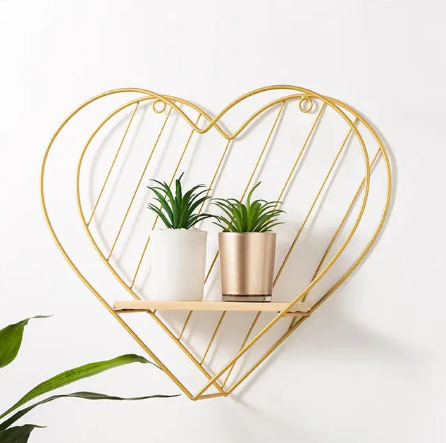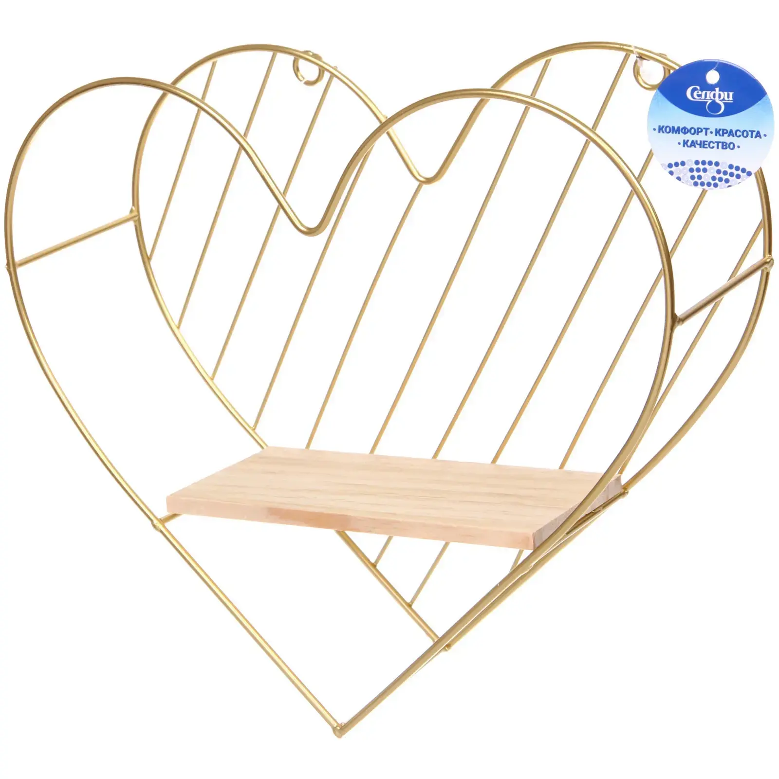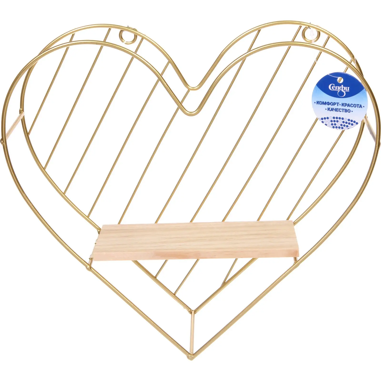 Преимущества этой полки включают надежность материалов — металл и дерево обеспечивают долговечность и устойчивость конструкции. Благодаря оригинальной форме сердца и лаконичному дизайну она подходит как для домашнего интерьера, так и для кафе, салонов красоты или офисных пространств. Размер изделия 27х30см позволяет оптимально использовать свободное пространство на стене, а золотой цвет добавляет элегантности и роскоши.