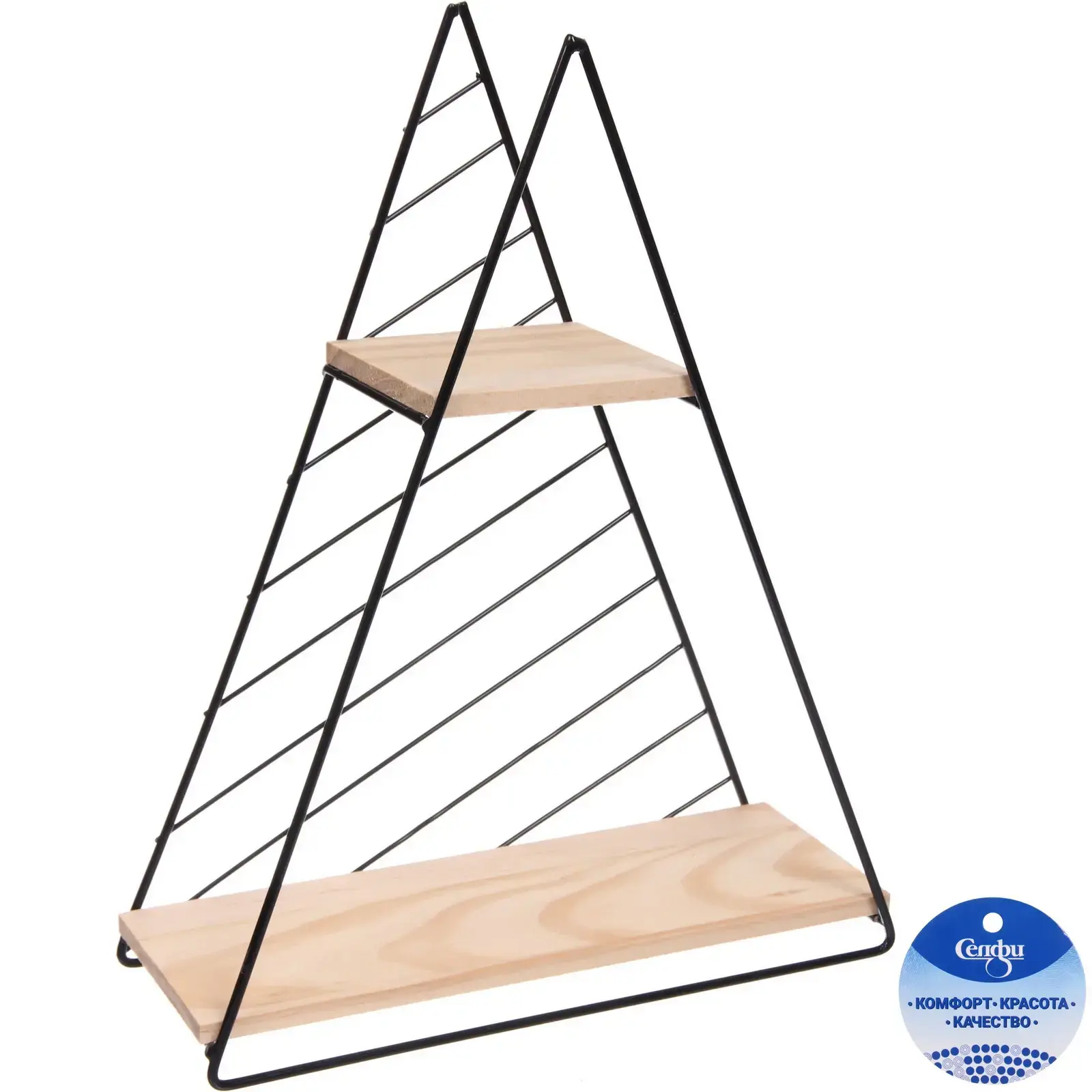 Эта подвесная полка идеально сочетает современный индустриальный дизайн в стиле лофт с практичностью для вашего интерьера. Оригинальная треугольная форма и контраст светлого дерева с черным металлическим каркасом добавляют выразительности любому помещению.