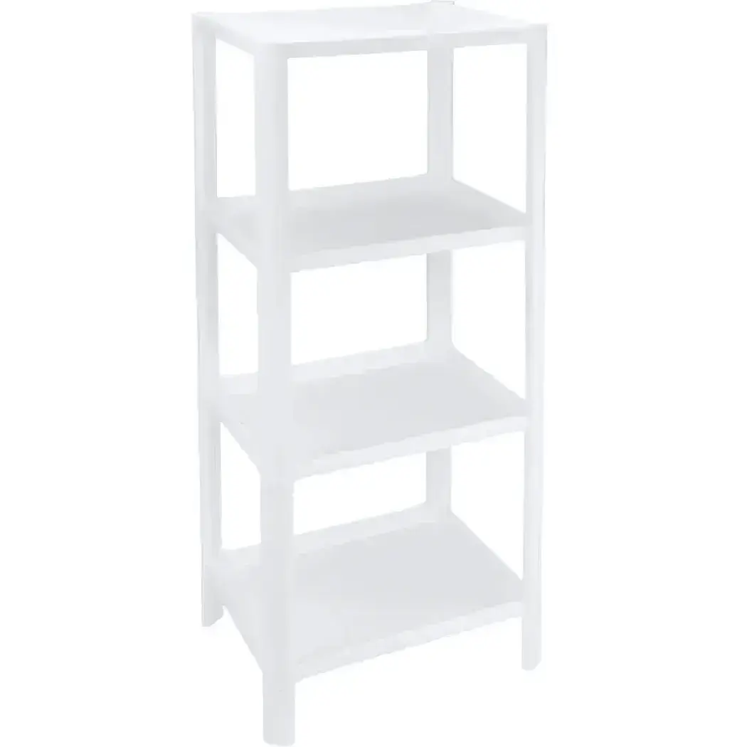 Стеллаж пластиковый прямоугольный, 4 полки, компактный, 34х75 см, белый