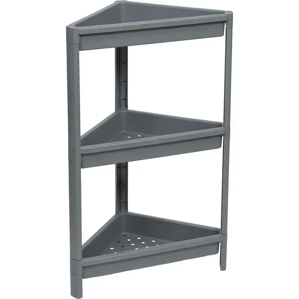 Полка угловая подвесная 3-х ярусная, серый пластик, размеры 40х25х75см