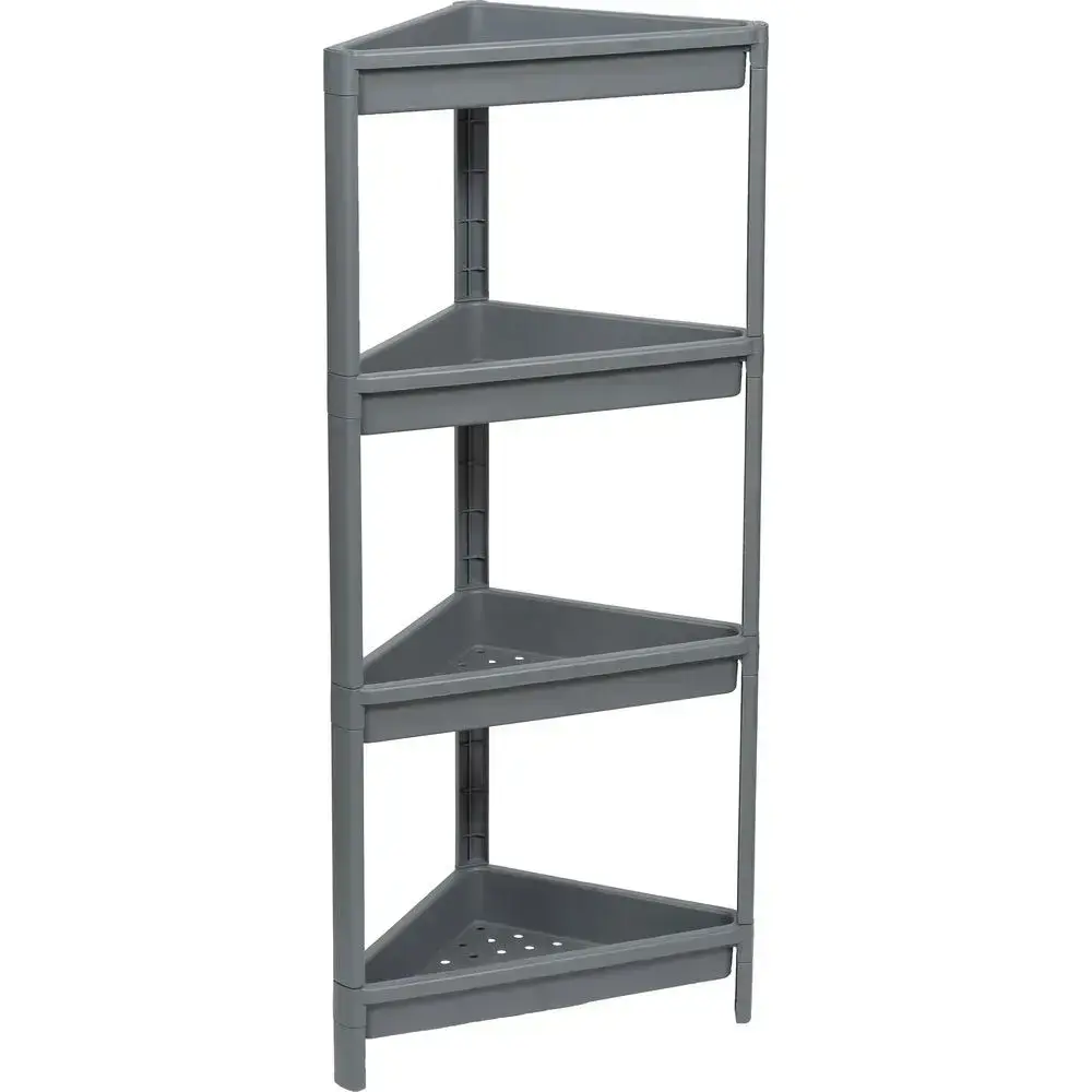Полка угловая VIKEA 4-х ярусная, серый, пластик, размеры под любой интерьер