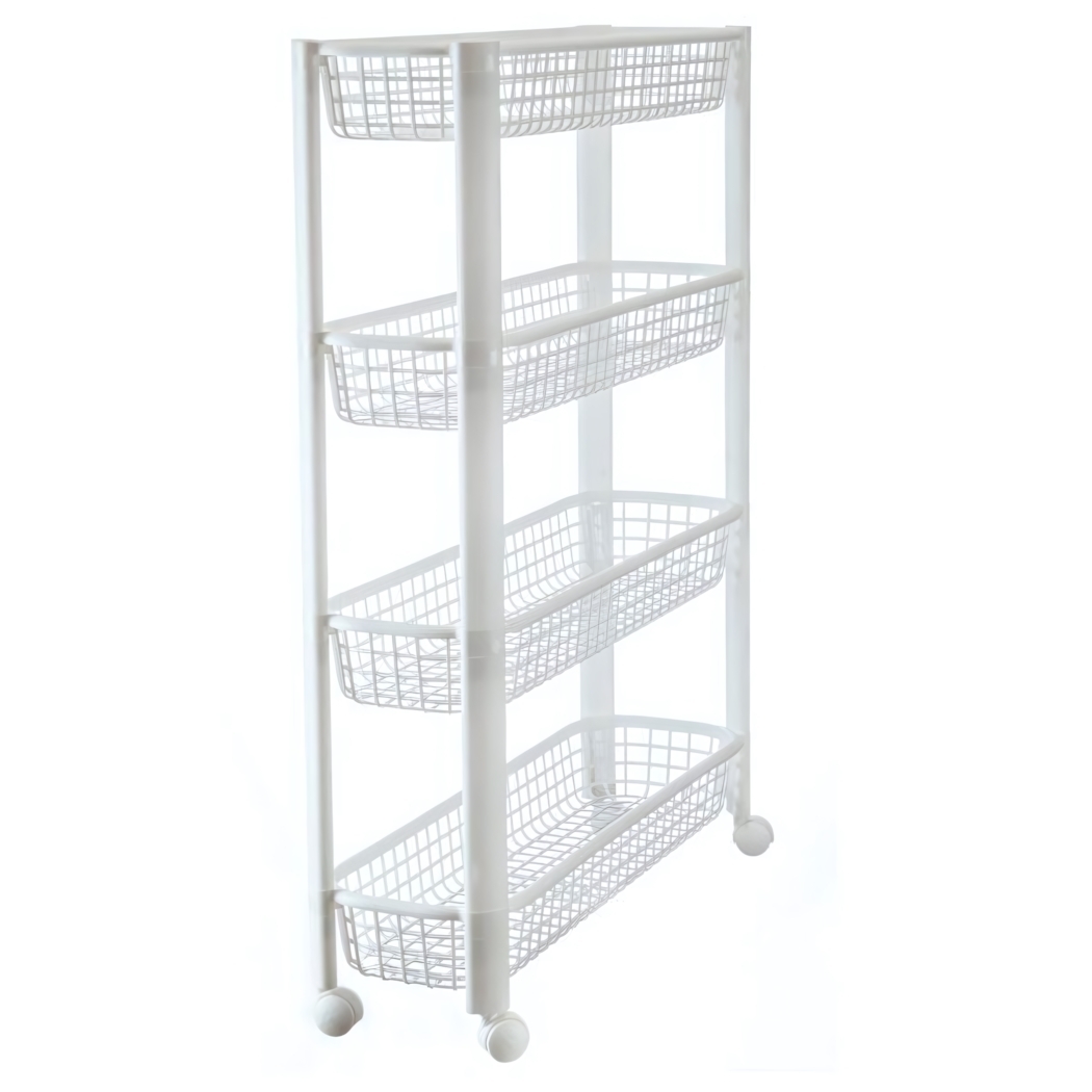 Компактная полка узкая на колёсах — идеальное решение для небольших пространств: мобильная, прочная и вместительная. Её 4 секции помогают разделять предметы и экономить место, а колесики позволяют перемещать её без усилий. Доступна в цветах чайная роза, фисташковый, белый — цвета в ассортименте, чтобы подобрать под стиль комнаты.