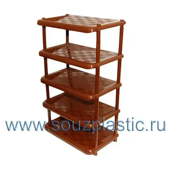Пластиковая полка-стеллаж 5-уровневая для прихожей, компактная, 84х50 см, коричнево-прозрачный пластик