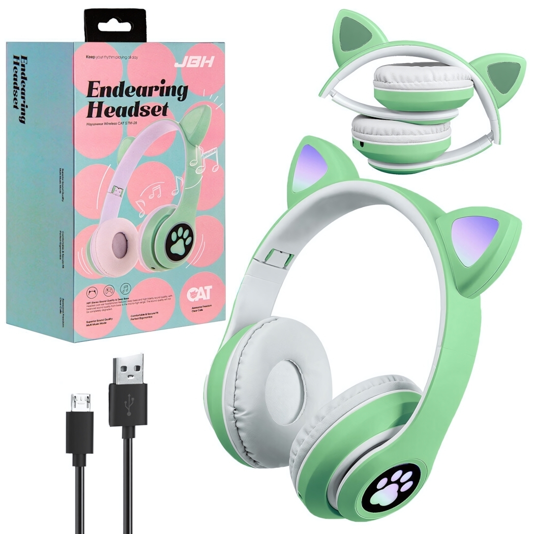 Погрузитесь в мир качественного звука и уникального дизайна с полноразмерной bluetooth-гарнитурой STM-28 CAT JBH. Эта гарнитура не только обеспечивает превосходное звучание, но и добавляет нотку игривости благодаря ушкам кота на оголовье. Светло-зеленый цвет с белыми элементами делает её стильным аксессуаром для любого образа.