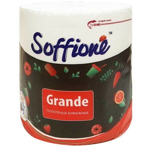 Каждый рулон полотенец SOFFIONE Grande имеет стандартный размер, что делает их удобными для хранения и использования. Упаковка оформлена в стильном дизайне с изображениями фруктов и овощей, что добавляет ярких красок в ваш интерьер. Эти полотенца — это не просто средство для уборки, а элемент вашего стиля и уюта.