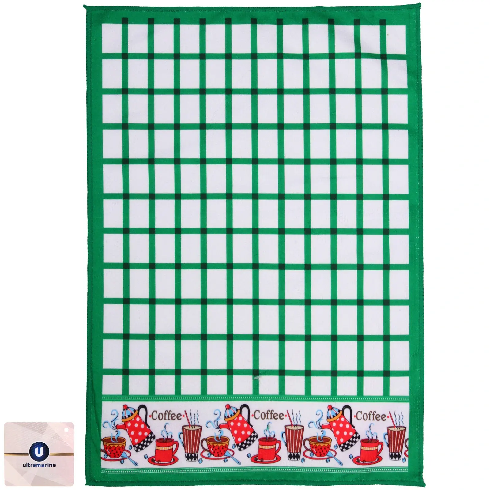Полотенце кухонное «Клетка - Кофе» 40х57 см, зелёное, микрофибра 200 г/м², быстрое впитывание