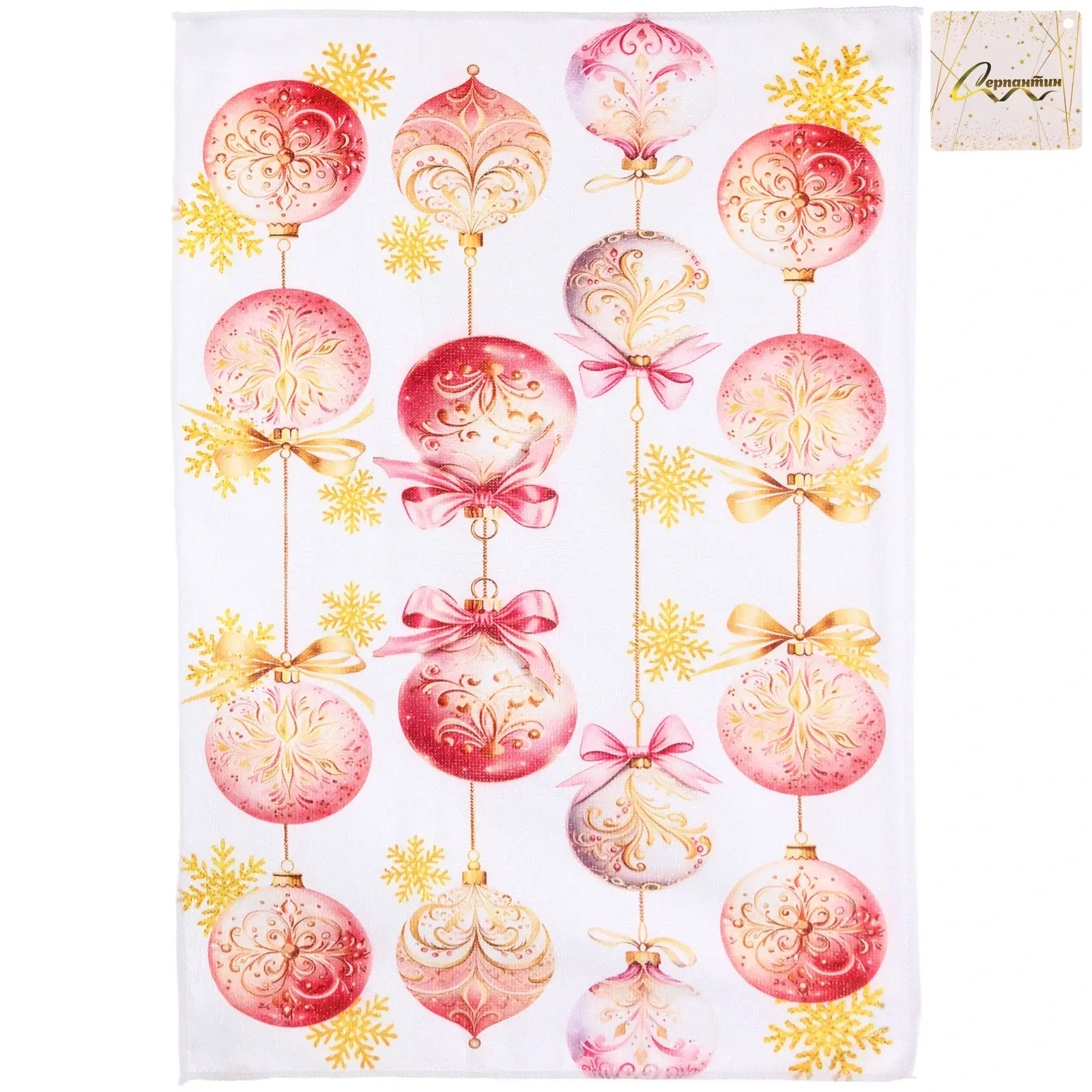 Полотенце кухонное «Ёлочные шарики», новогодний дизайн, 40х57 см, микрофибра 200 г/м², цвет в ассортименте