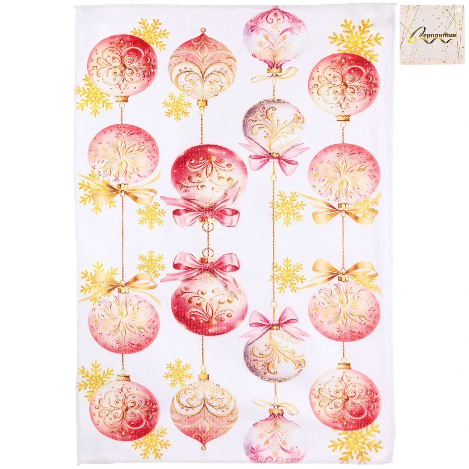 Новогоднее полотенце с дизайном ёлочных шаров создаст волшебную атмосферу и станет практичным помощником в быту. Идеальный баланс эстетики и функциональности для тех, кто ценит праздничное настроение в деталях.