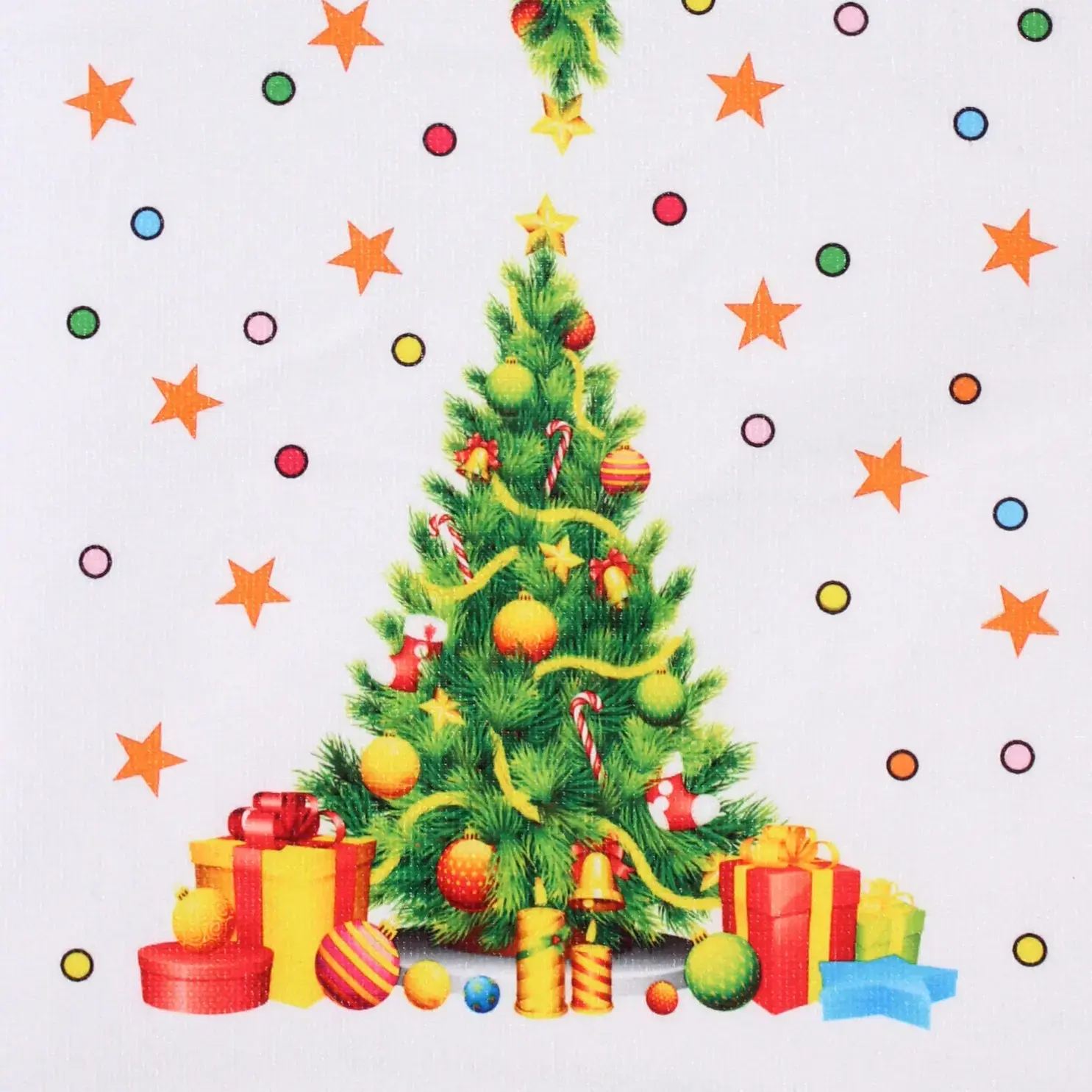 Материал: 100% полиэстер (микрофибра). Расцветка — новогодняя ёлка с подарками и украшениями. Отгружается один товар, цвет и расположение принта может незначительно отличаться в зависимости от партии.
