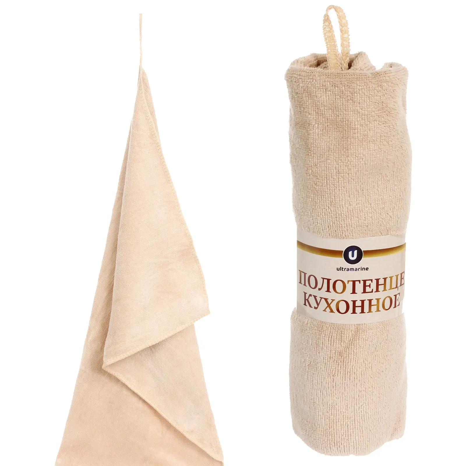 Полотенце кухонное «UNICO», 34x72 см, бежевое, микрофибра 300 г/м², с петлей для подвешивания
