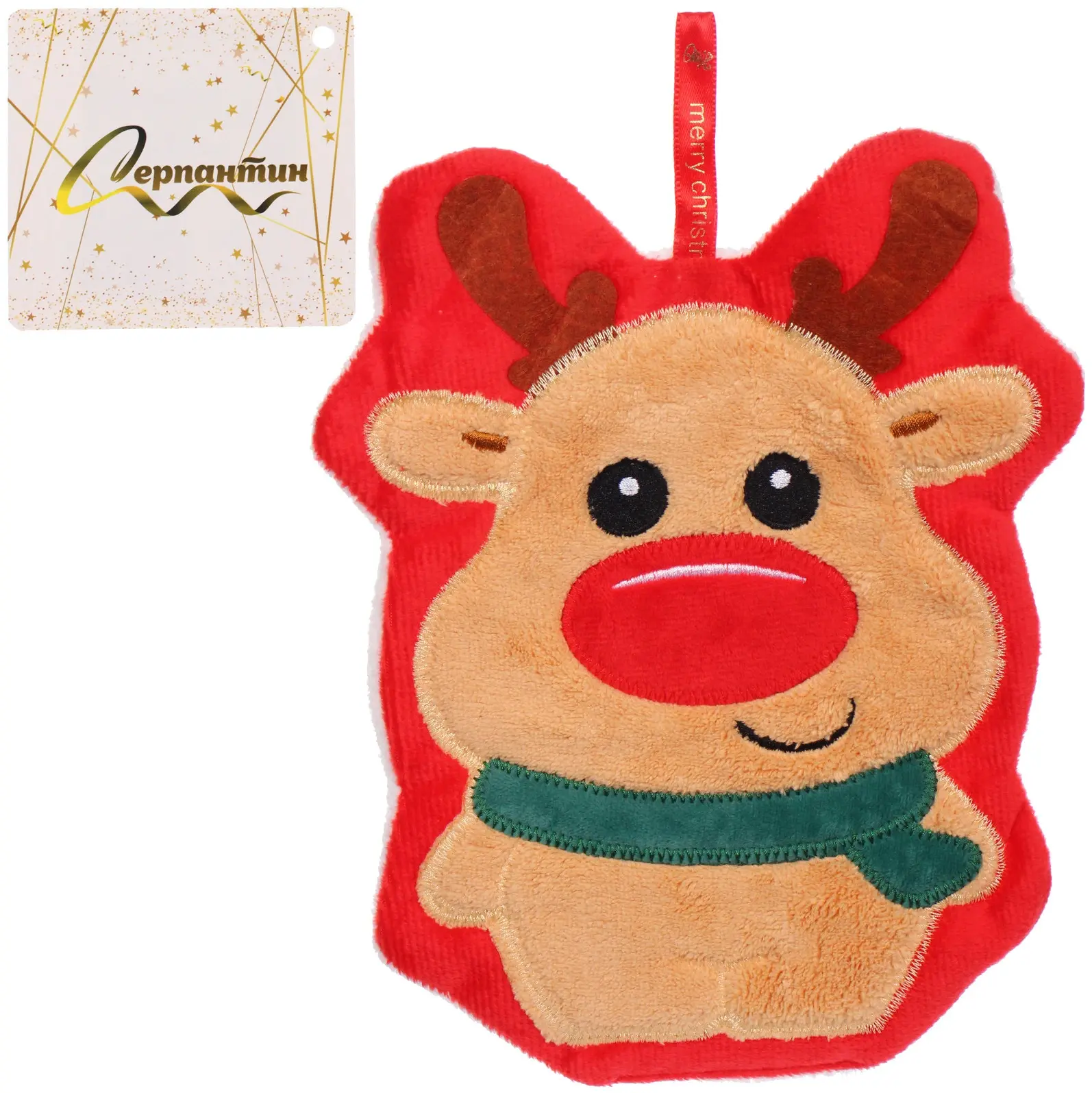 Полотенце идеально подходит для использования в домашних условиях, а также может стать замечательным подарком для ваших близких. Благодаря яркому дизайну и интересному оформлению в виде оленя, оно станет изюминкой любого праздничного угощения или семейного обеда. Размер полотенца 22,8х18 см делает его удобным для использования не только на кухне, но и для сервировки десертов.
