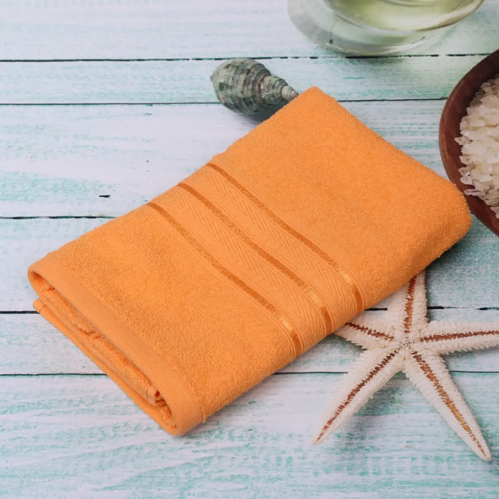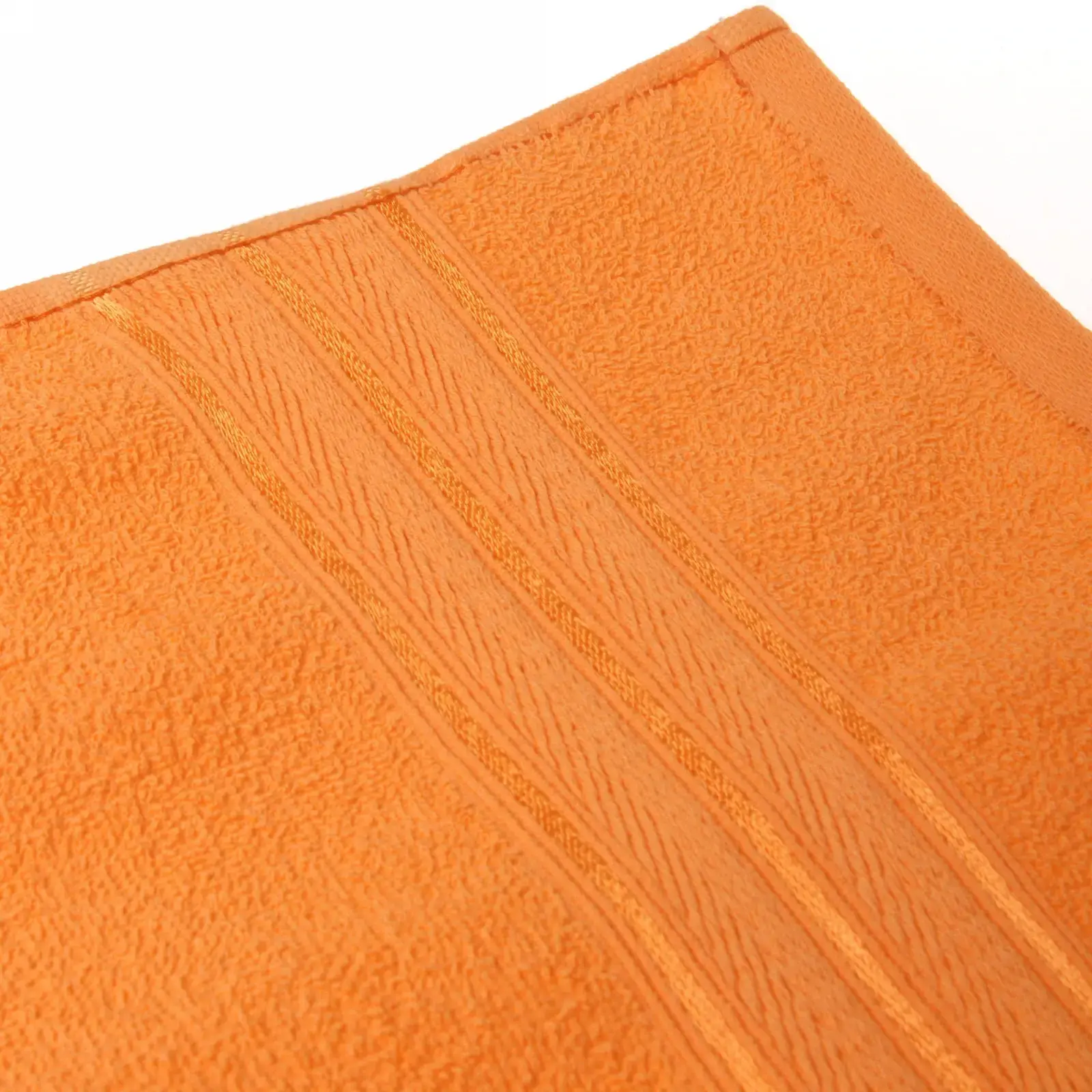 Благодаря длине петли 5 мм полотно быстро впитывает влагу, оставаясь воздушным. Насыщенный оранжевый цвет создает солнечное настроение, а классический дизайн с текстурными полосами гармонирует с любым интерьером. Используйте как банное полотенце, аксессуар для спа-процедур или элемент декора в морском стиле.
