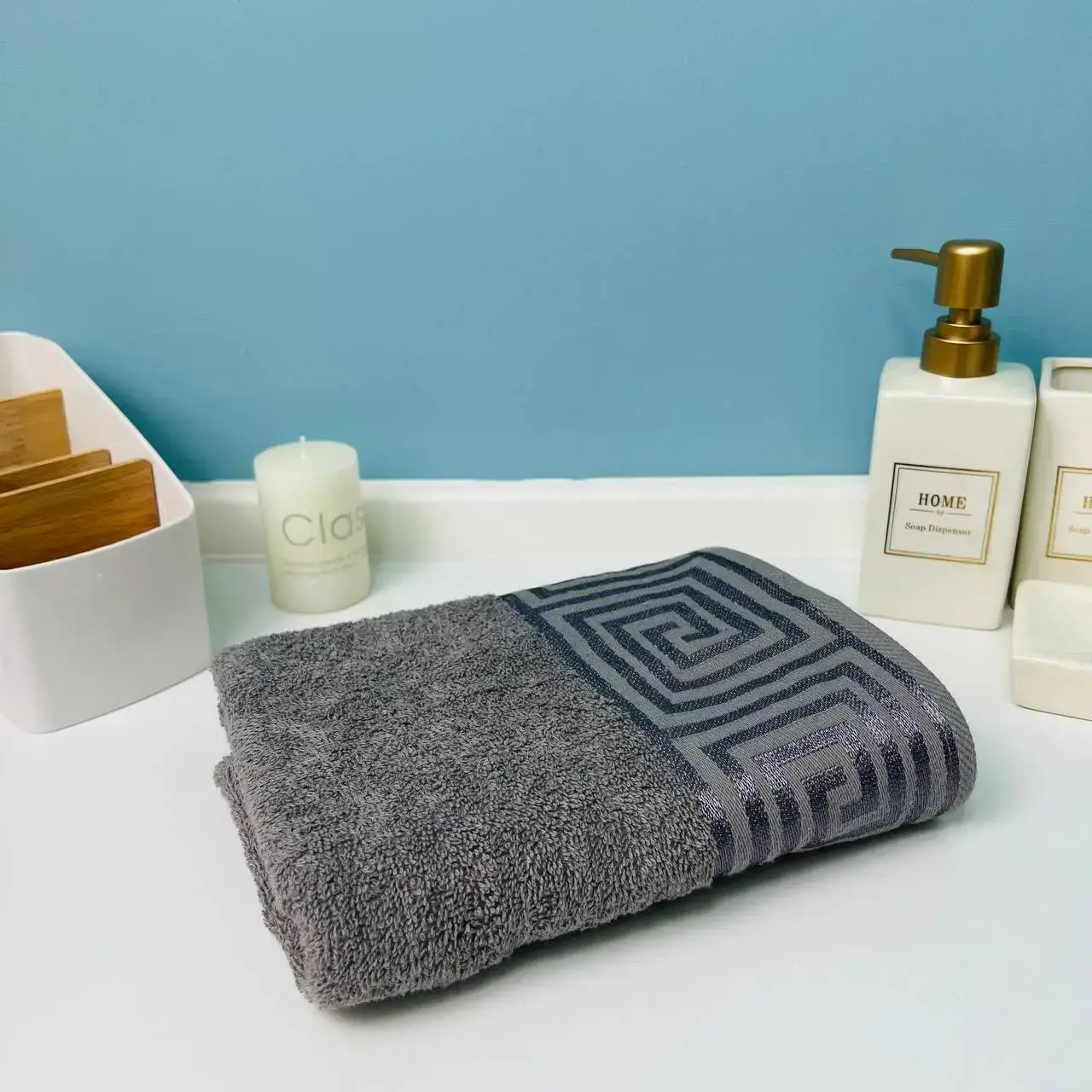 Полотенце махровое «POSEIDON» — это идеальный выбор для тех, кто ценит комфорт и качество. Изготовленное из 100% хлопка, оно обладает высокой плотностью 420гр/м2, что обеспечивает отличную впитываемость и долговечность. Серый цвет с геометрическим узором добавляет элегантности и стиля в ваш интерьер.
