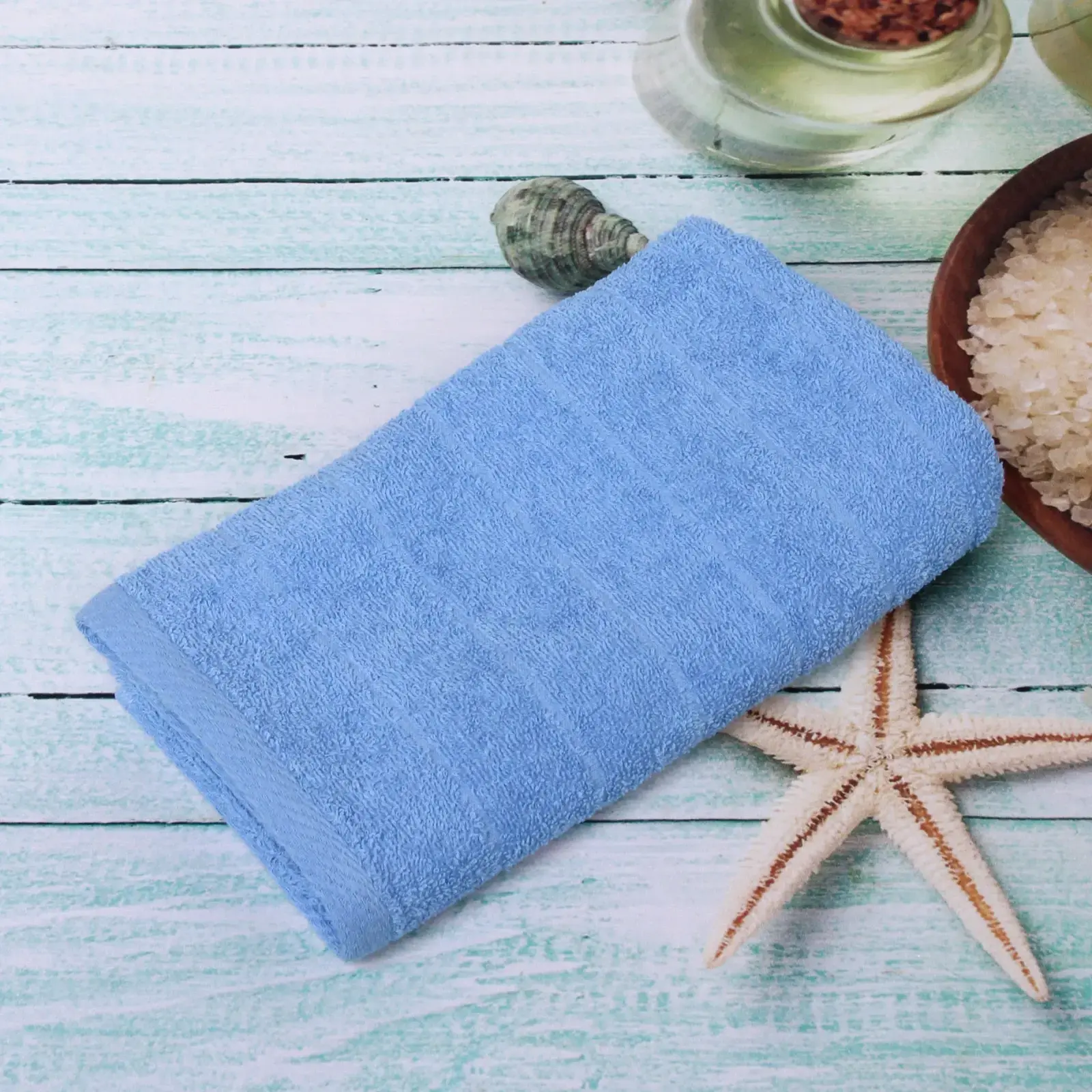 Махровое полотенце «Sea wave» 50x90 см, голубое, плотность 400 г/м², мягкое, износостойкое