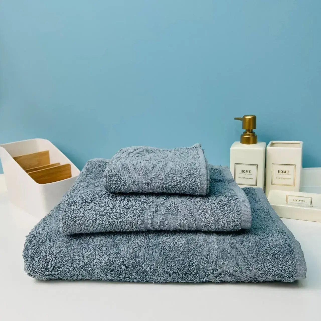 Полотенце махровое 50х90см «Vivien» в цвете грозовое небо — это идеальный выбор для тех, кто ценит комфорт и качество. С плотностью 400гр/м2, оно обеспечивает отличную впитываемость и мягкость, что делает его незаменимым атрибутом в ванной комнате. Благодаря петельке-подвесу, полотенце удобно хранить и использовать, что экономит ваше время и пространство.