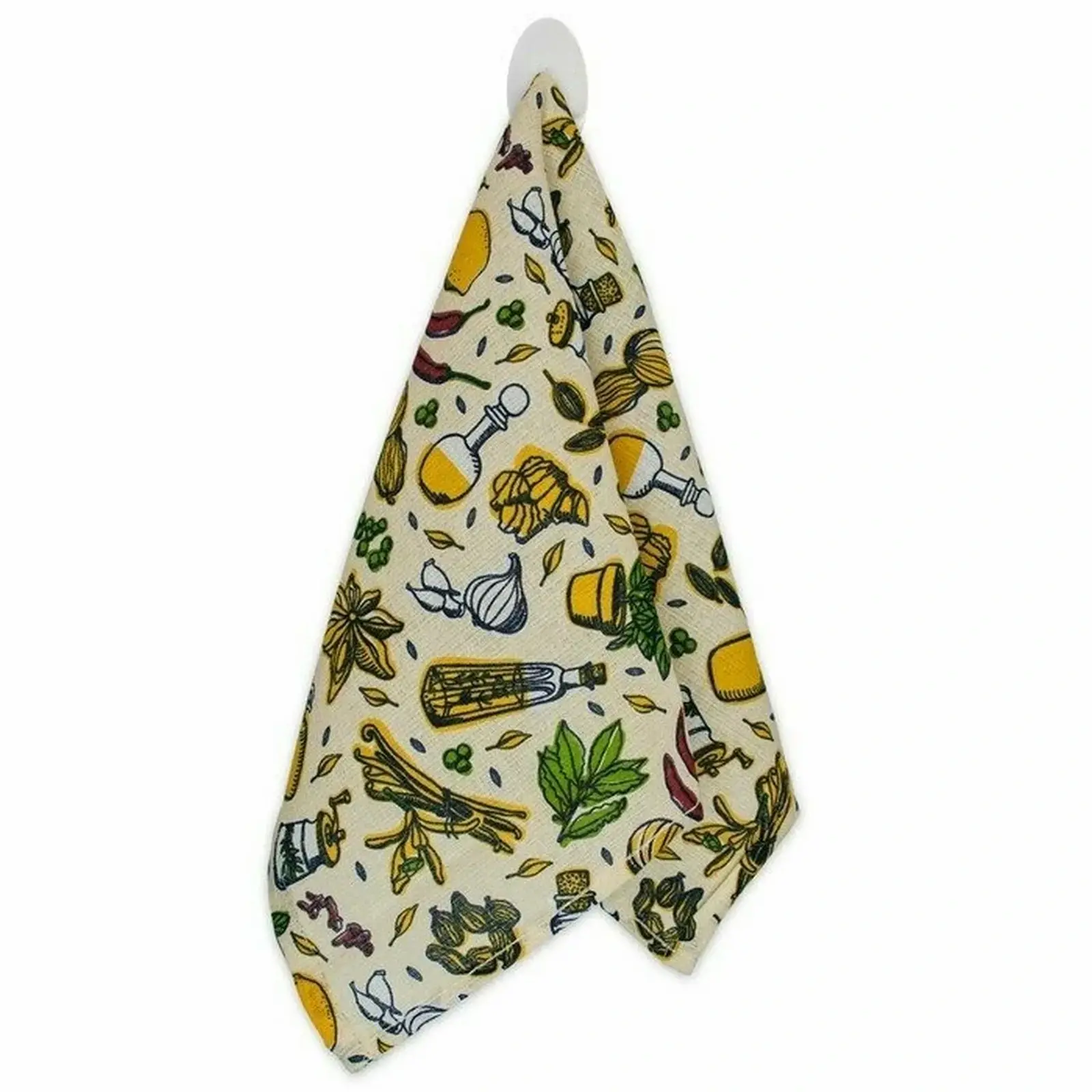 Вафельное полотенце «Оливки ОЛ_1», 35х60 см, 100% хлопок, кухонный декор с принтом пряностей