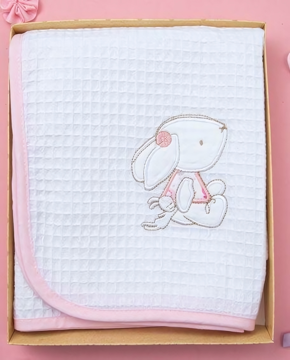 - Нежный розовый цвет с милым дизайном зайчика создает атмосферу тепла и заботы