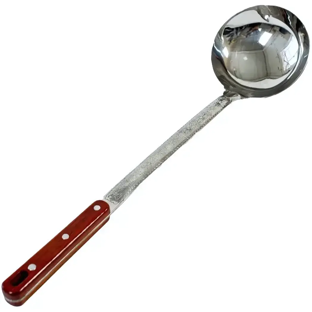 Половник кухонный из нержавеющей стали, 40 см, деревянная ручка с отверстием для хранения