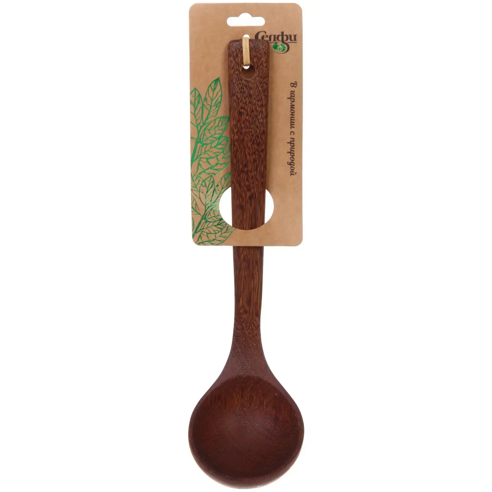 Этот удобный и долговечный половник станет незаменимым инструментом для приготовления и сервировки блюд. Его длина в 27 см позволяет легко черпать и подавать супы, соусы и другие блюда, не обжигая руки. Половник выполнен из качественного дерева, что гарантирует его прочность и долговечность. Благодаря натуральному материалу, он не только безопасен для здоровья, но и придаёт вашему кухонному инвентарю стильный вид.