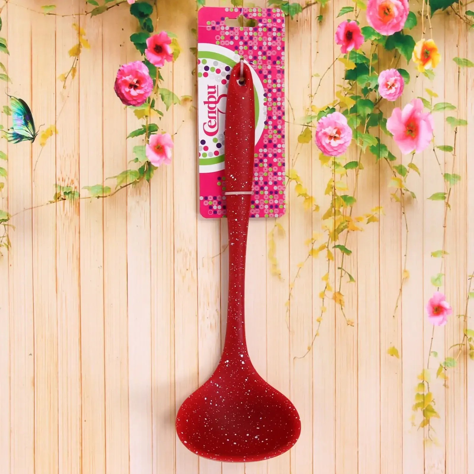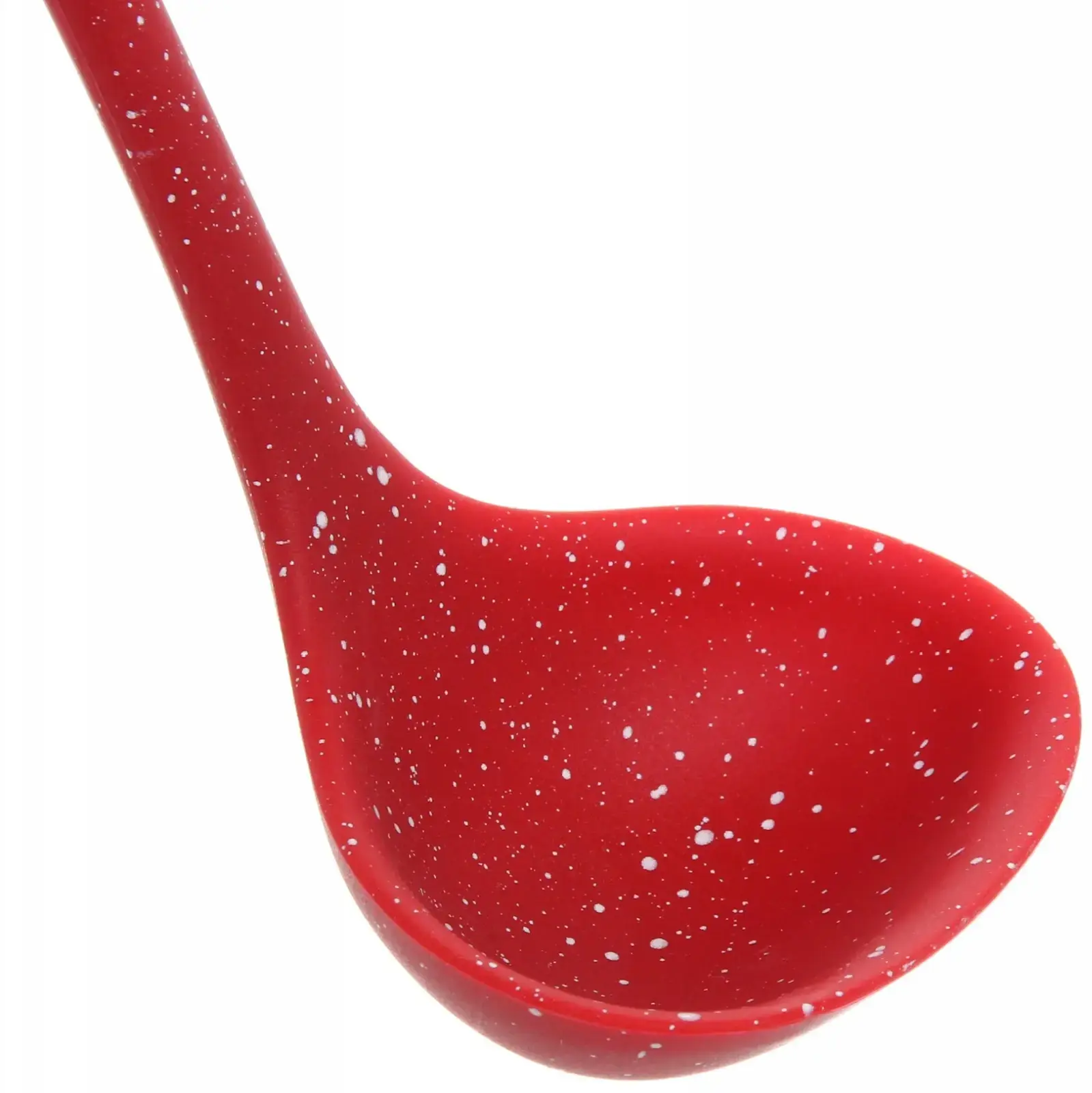 Половник кухонный удобный с отверстием для подвешивания, силиконовый, красный с блестками «Bon appétit»