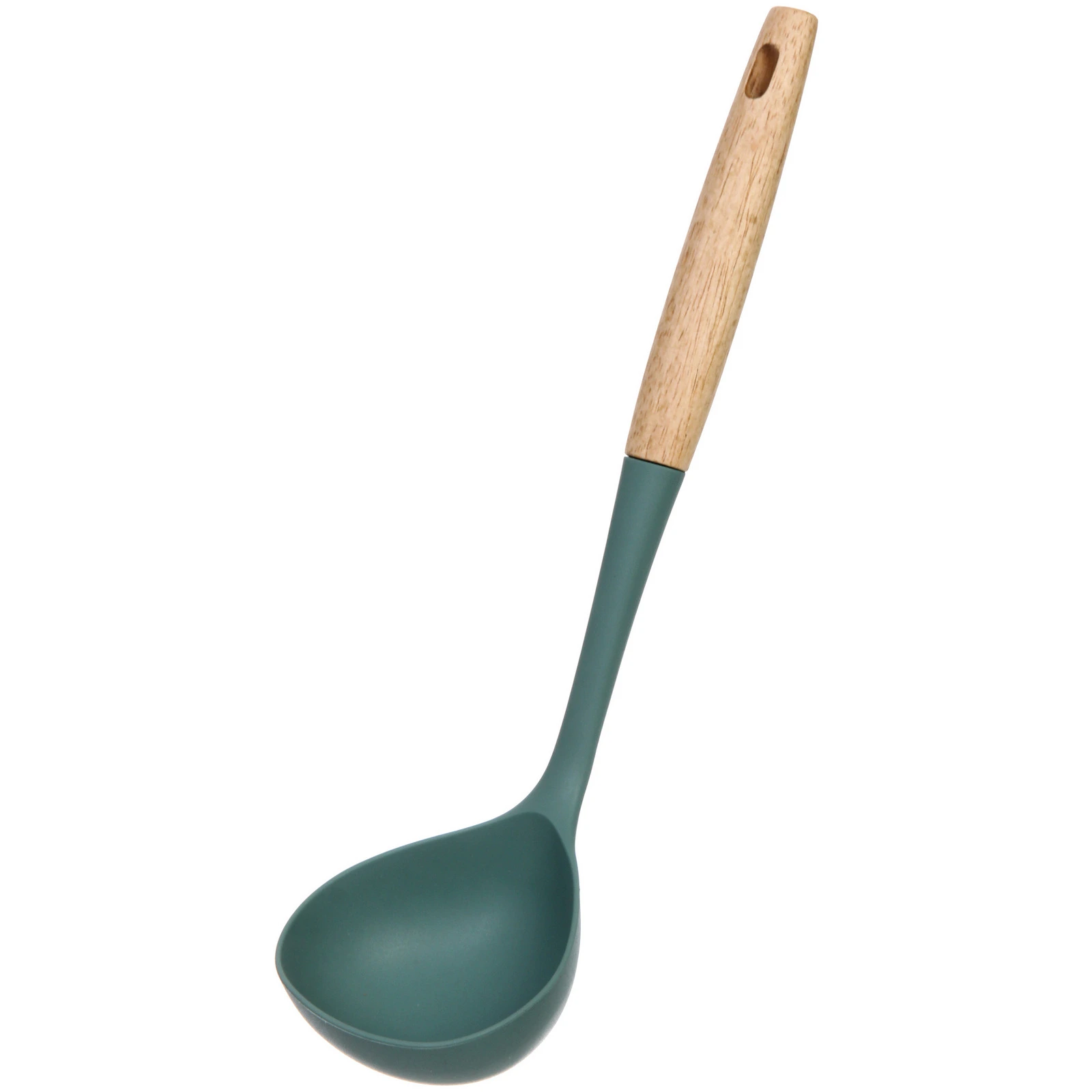 Половник имеет длину 34 см, что делает его идеальным для использования в глубоких кастрюлях. Силиконовая часть позволяет легко черпать и подавать блюда, не повреждая посуду. Деревянная ручка обеспечивает надежный хват и добавляет эстетики вашему кухонному инвентарю. Отверстие в верхней части ручки позволяет удобно хранить половник в подвешенном состоянии, что экономит место на кухне.